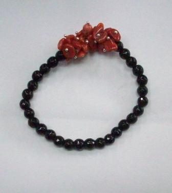Descrizione : Bracciale in agata nera con centrale corallo