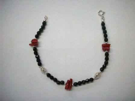 Descrizione : Bracciale in agata nera , corallo ed elementi in argento
