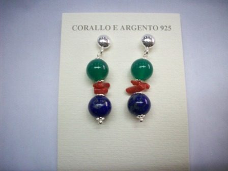 Descrizione : Orecchino in argento con corallo e sfere lapis , agata verde